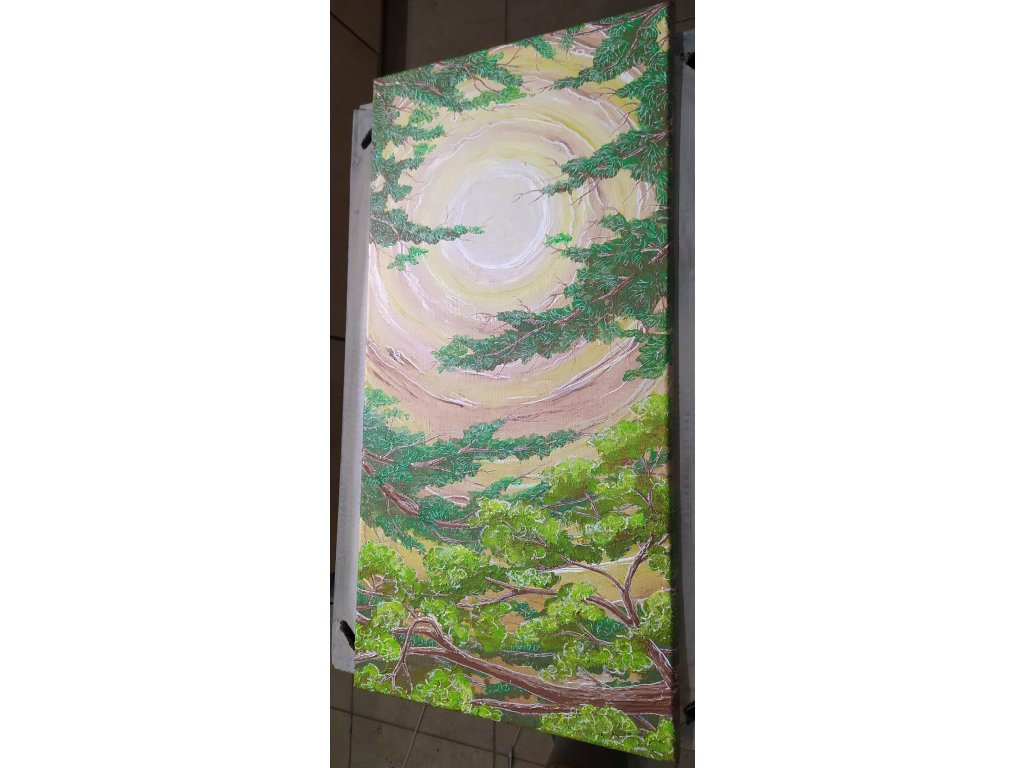 Jedinečný originál malovaný ze 4 poslepu vybraných barev a bílé, vede k radostnému životu tady a teď. Malováno akrylovými barvami na plátno velikost obrázku 60 x 30 x 2 cm.