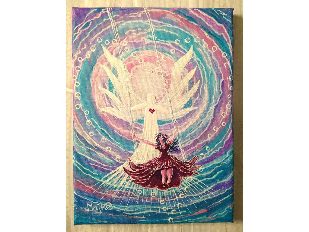 Jedinečný originál malovaný ze 4 poslepu vybraných barev a bílé, vede k radostnému životu tady a teď. Malováno akrylovými barvami na plátno.