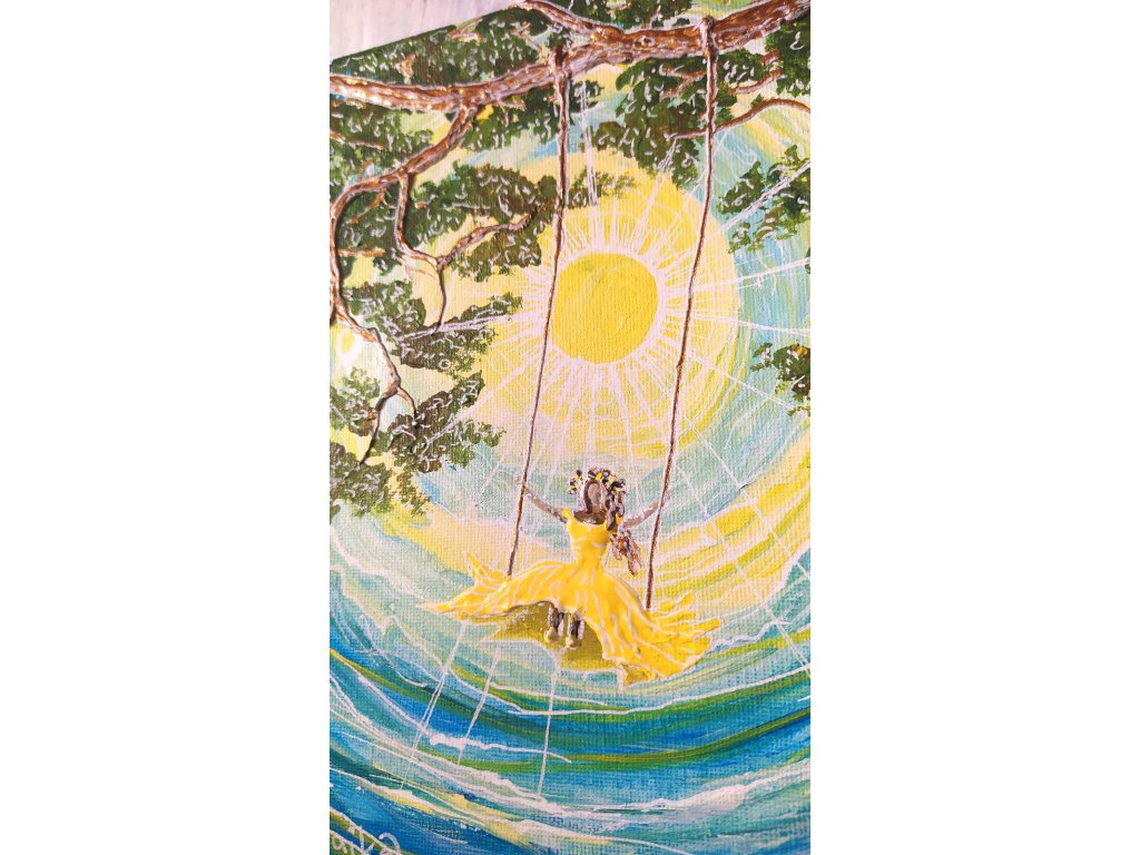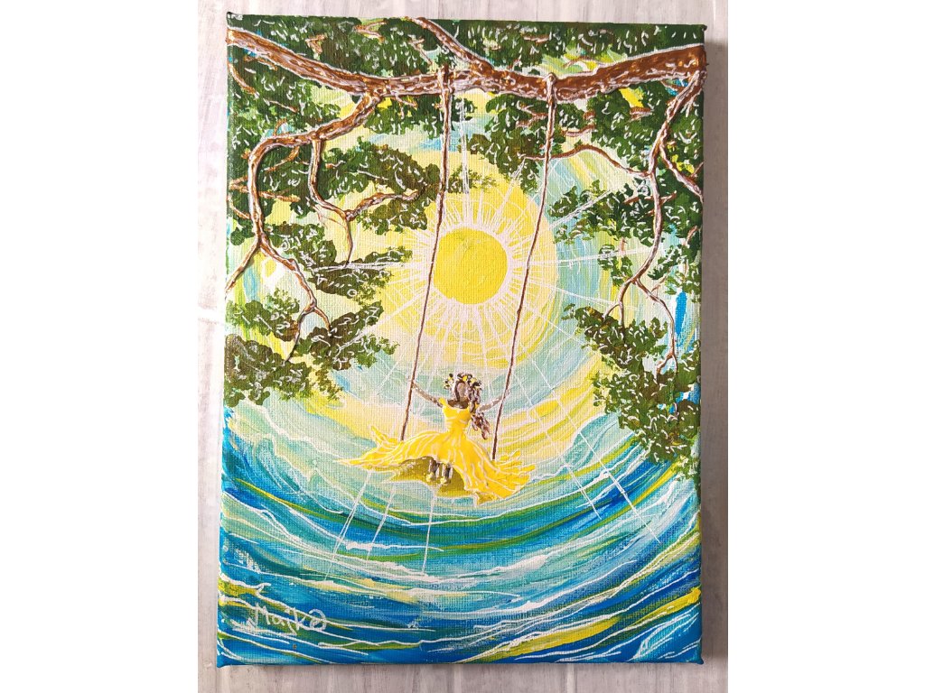 Jedinečný originál malovaný ze 4 poslepu vybraných barev a bílé, vede k radostnému životu tady a teď. Malováno akrylovými barvami na plátno.